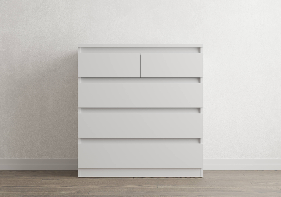 Aksel - комод без лишнего. Лаконичная скандинавская форма, четыре варианта цвета и скос под плинтус позволяют вписать его в любую комнату: спальню, гостиную, детскую или домашний кабинет и встать вплотную к стене без зазора. Надёжные шариковые направляющие обеспечивают плавное и лёгкое выдвижение ящиков без рывков и перекосов.