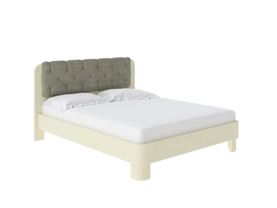 Обтекаемая форма основания кровати дополняется изящным изголовьем с уникальной каретной стяжкой. Изголовье обито мебельной тканью.
